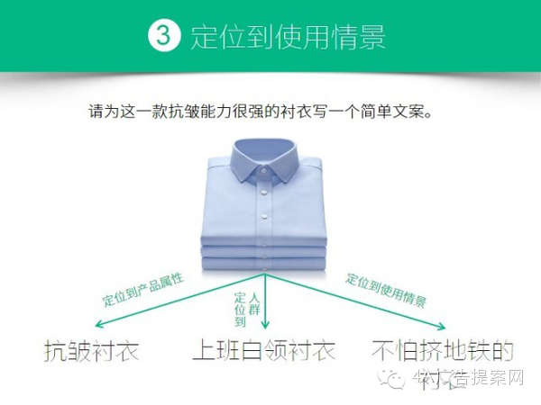 凡 客抗皱衬衫的竞争对手其实并不是价值几千块的商务衬衫(像它宣传的那样),因为肯用这些商务衬衫的人瞧不起凡客;它更可能的竞争对手是T恤和POLO,因 为它的消费者是那些因为害怕挤地铁把衬衫挤皱而不得不穿T恤的人。(关注微信:4A广告提案网,微信号:weiguanggao与中国广告人一起成长)
