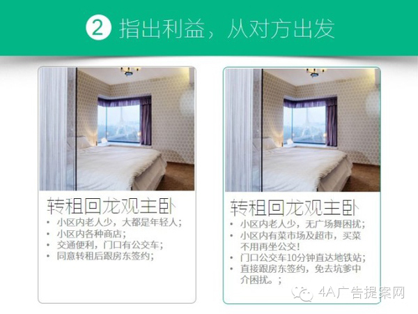 比如上面的转租房间广告,右边的说出了具体的“利益”,显得更加吸引人。