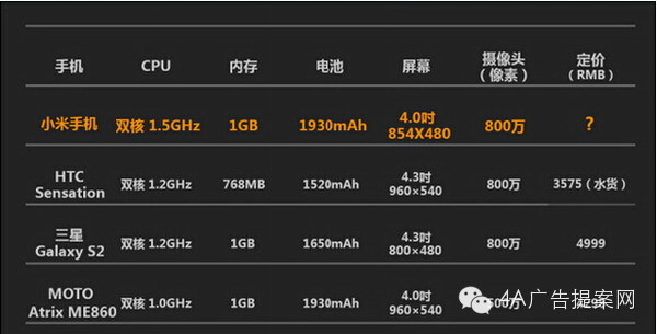 所以雷布斯在2011年产品发布会上,就开始巧妙地用这关键一张图来分解产品属性: