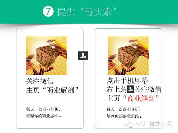 比如上图,假设这是在微信主页发的文章,为了让你关注该微信主页,肯定是右边的文案更有效—它让你想都不想就知道现在怎么做。
