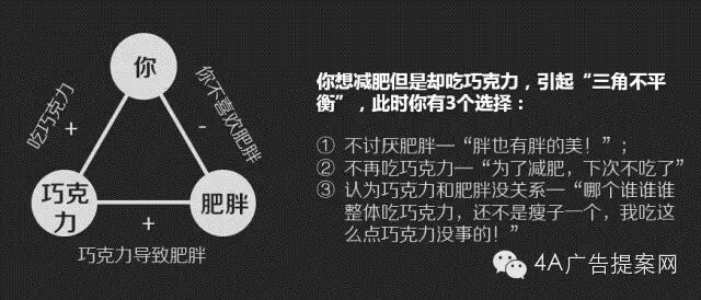 比如你觉得巧克力和肥胖是关系相近的(正关系),但是喜欢巧克力(负关系)不喜欢肥胖(负关系),这时就是2个正关系和1个负关系,导致三角出现了不平衡。
