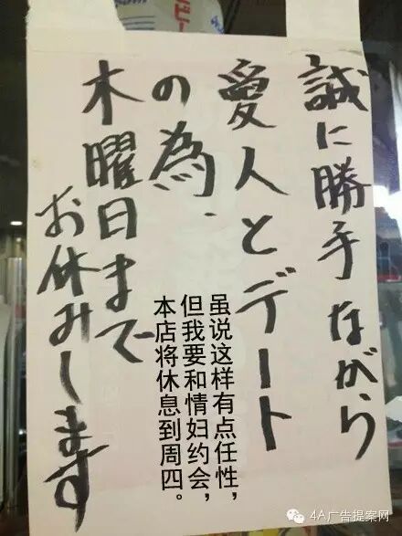 未经允许不得转载:4A广告提案网 | 广告小报 | 广告圈那点事 » 11区一些饭店的临时休息告示,任性了哈