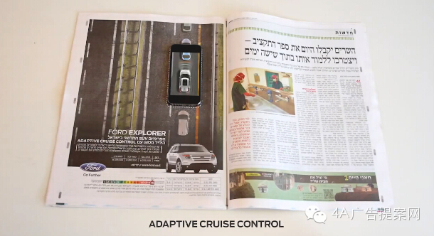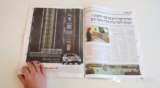 通过扫描报纸Ford Explorer页面中的二维码,并把手机放在相应的空白位置,就会看到相关的性能演示,如停车系统、电动折叠座椅等,相当有趣。