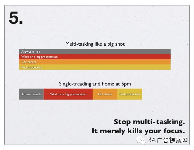 5、不要多任务,这只会消耗注意力;保持专注,一心一用。
