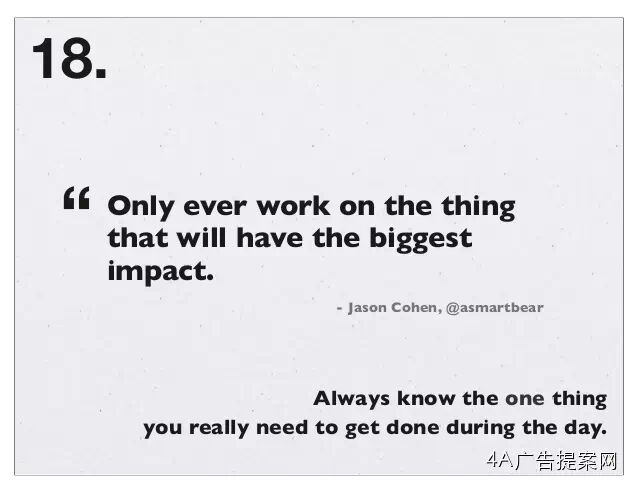 “Only ever work on the thing that will have the biggest impact” 只去做那件有着最大影响的事情。—— Jason Cohen