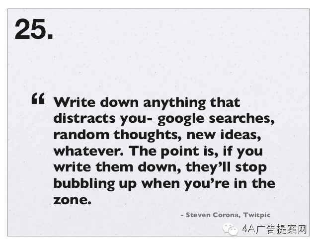 25、进入高效状态后,记下任何分散你注意力的东西。