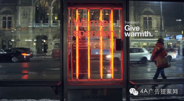 Caritas为应对维也纳市立公园对流浪人员的驱逐,提高社会福利慈善事业,支持无家可归的人们度过冬天,他们在公交站台创建了一个十分特别的“灯箱”广告。