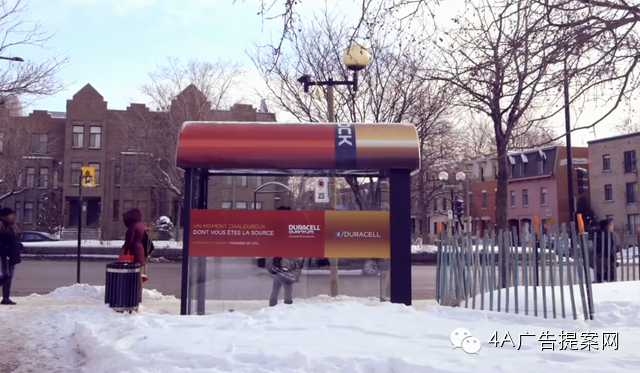 天冷了,抱团取暖,合情合理啊。在这个冬季暴风雪的袭击下,金霸王加拿大利用人体能导电的原理,在街头制造了一个暖风四溢的公交站台。前来候车的人们手拉起手,连接站台两端电池的正负两极,呼呼的暖风就会从站台顶部吹出来哦。