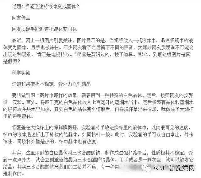 央视二套财经频道有一个节目叫做“是真的吗”,曾经报道过“手能迅速把液体变固体”,说的其实就是三水醋酸钠的饱和结晶功能,这个大家可以搜一下顺便做下实验,还是挺好玩儿的。(动图太大,自己搜)