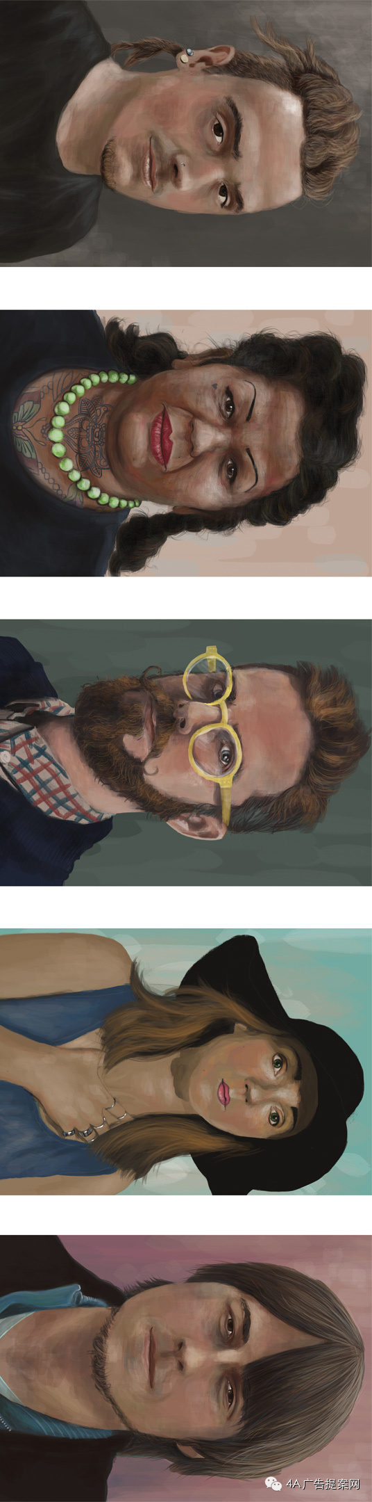 从 艺术学校毕业后,Roz Hall 就开始了身兼讲师、项目经理和父亲三职的生活,没空再作画,家里也没有了容纳画室的余地。十年之后,他发现了 iPad 和艺术创作 app,这样一来,不管在哪里,他都能挥洒随时迸发的灵感。这组肖像画是 Hall 使用 Procreate 创作的,描绘他在大学附近路遇的有趣之人。