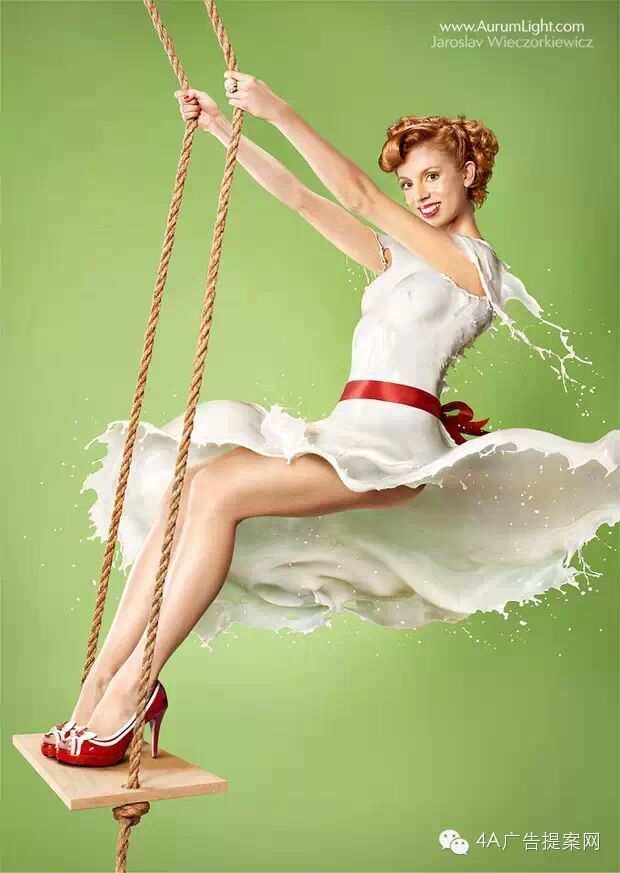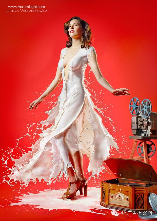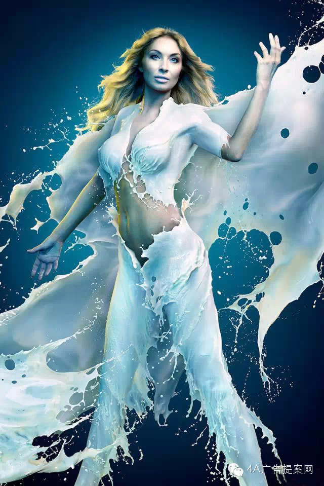 让我们再次回顾下2014年的牛奶外衣日历。众女模身披牛奶性感别致,液体肆意乱流却呈现出飘逸质感。