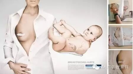 这是亲子杂志Maternity内的广告,两页将母亲的胸部和婴儿的嘴粘在一起,这样你翻开杂志的时候,baby的嘴巴会把母亲的胸部撕下来,表示哺乳非常痛,除非你用Garmastan润滑护理乳液。广告由MILK (Vilnius)公司设计。