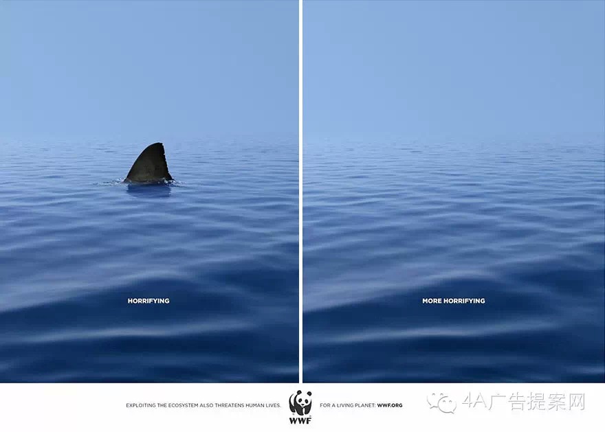 4、“恐怖,与更恐怖。”大海中看到鲨鱼鳍很恐怖,但是,让大海中再也不出现鲨鱼鳍的人类,更恐怖。