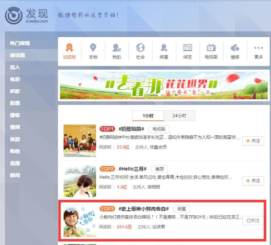 有深度的洞察话题,配合有质量的原创内容,在有规划的传播策划下,微博话题#史上最嫩小鲜肉告白#于上线数小时即夺得话题榜前三、明星类别第一的成绩。