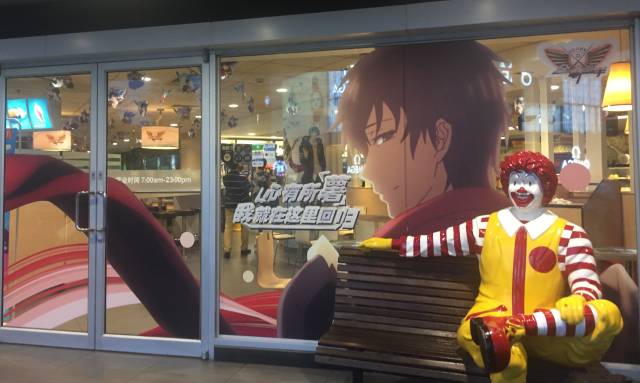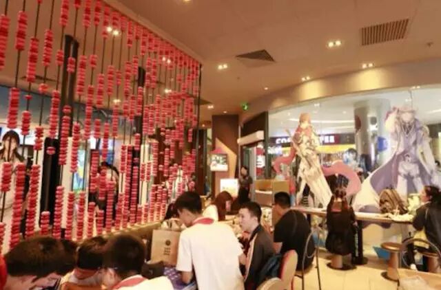 《全职高手》动画开播期间,麦当劳在杭州、上海两地接连打造了全职主题店,几乎每天人声鼎沸,成了当地或途径粉丝们必去打卡的圣地。