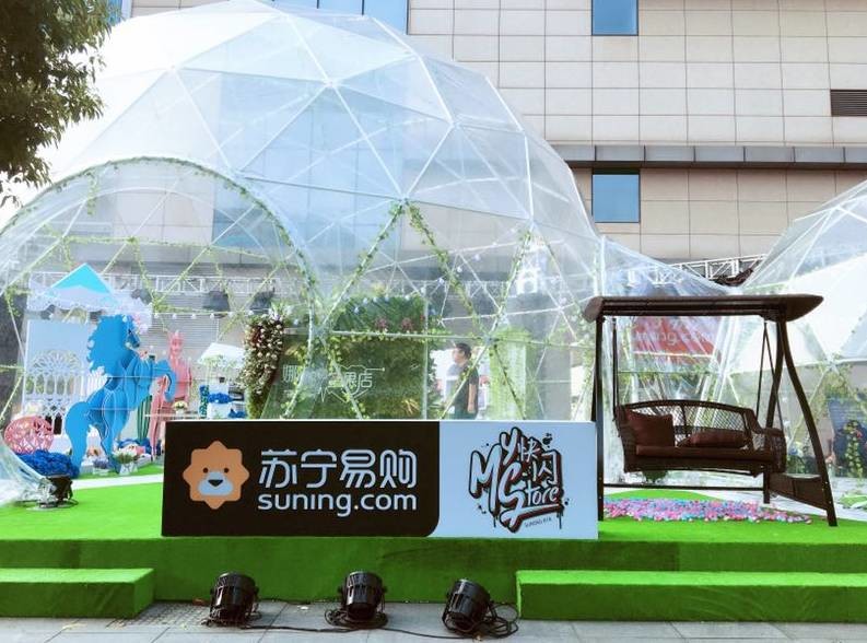 不过这个店可不是普通网店,而是和苏宁易购合作的一个快闪店。大家应该都听说过快闪店吧,快闪店可以说是时下最流行的设定了。