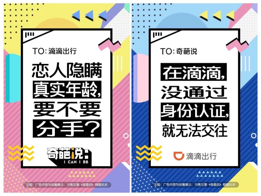 可以说,滴滴和奇葩说在品牌秀恩爱这个层面上,秀出了新高度,也秀出了新玩法。