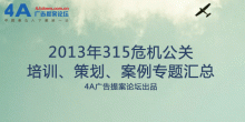 一年一度的315又到了,又到了众多商家胆战心惊的时候,4A广告提案论坛收集汇总危机公关培训资料、案例分析、策划提案等各种资料,希望能帮助你应对突如其来的危机! 地址:http://www.4adown.com.cn/thread-17427 […]